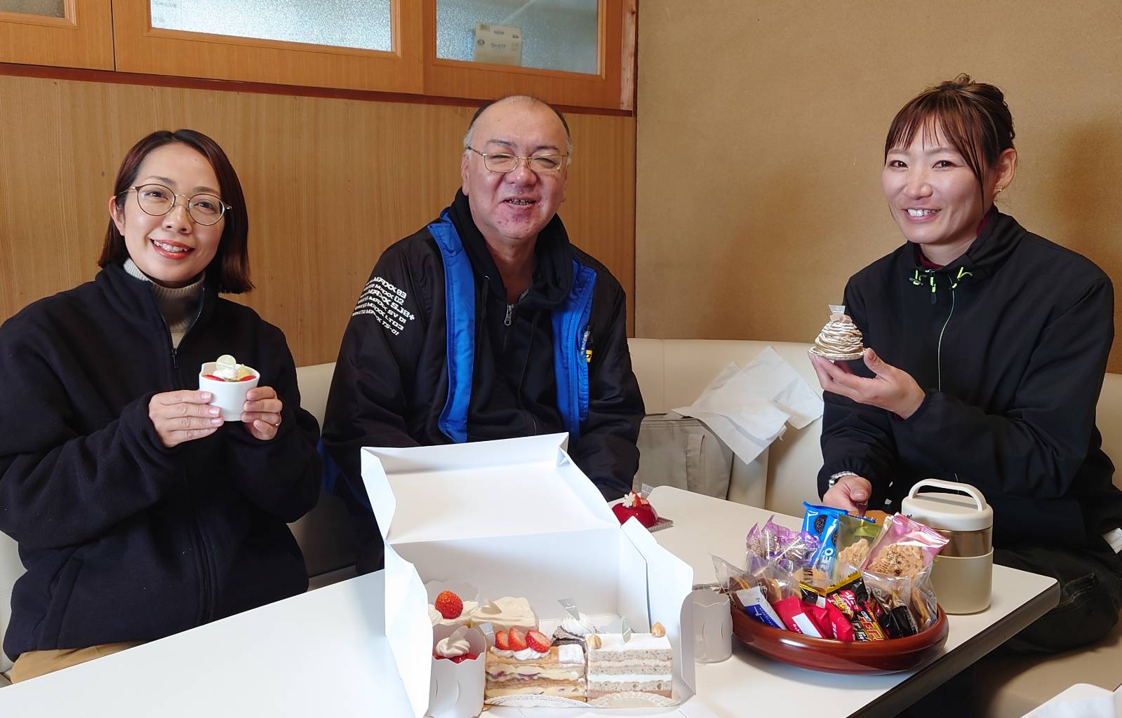 中島さんがパートから正社員へ、濱田さんがパート社員として入社されましたので、お祝いをしました。